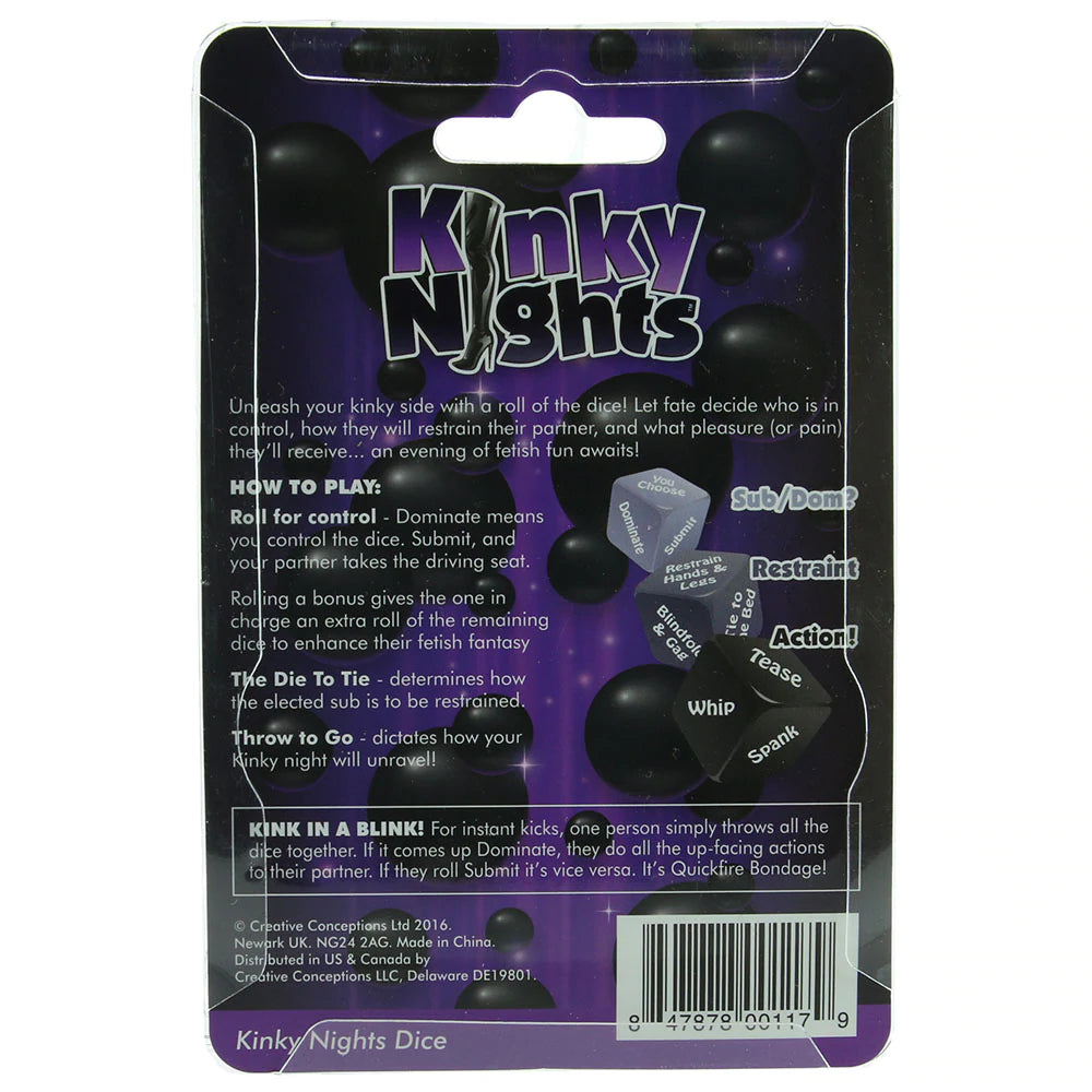 When that sexily reckless mood hits and you're up for the challenge of leaving the night's kinky activities up to chance, call on the Kinky Nights Bondage Dare Dice to unleash some seriously scintillating possibilities!